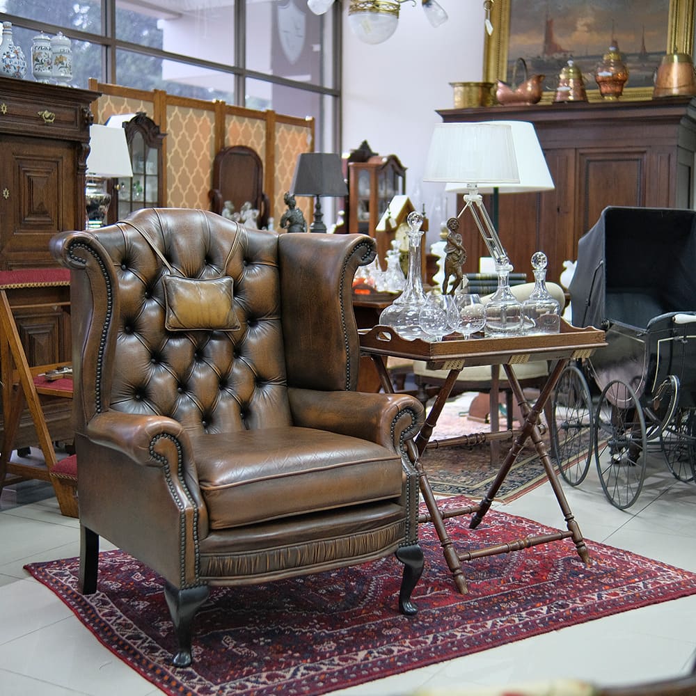 Sillón en cuero estilo Chesterfield